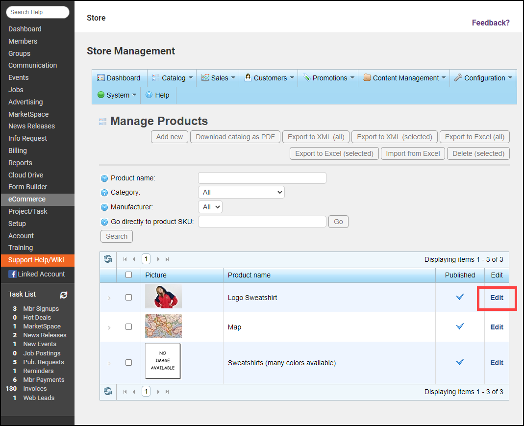 - Go to Catalog > Products > Manage Products.