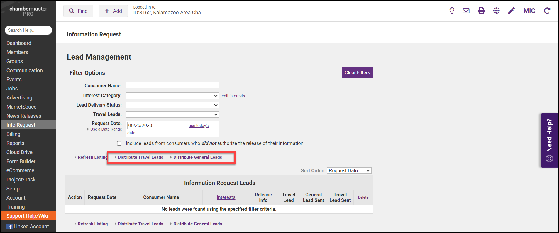 - Click Distribute General Leads or Distribute Travel Leads.