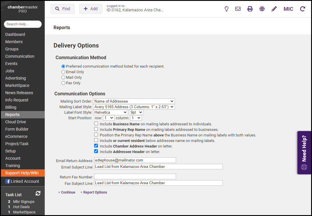 Click the desired Delivery Method for these leads and select Continue.