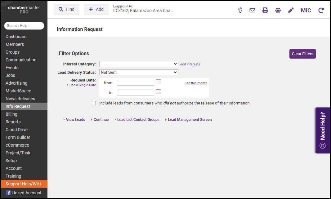 - Click Lead Management in the Information Request area.
