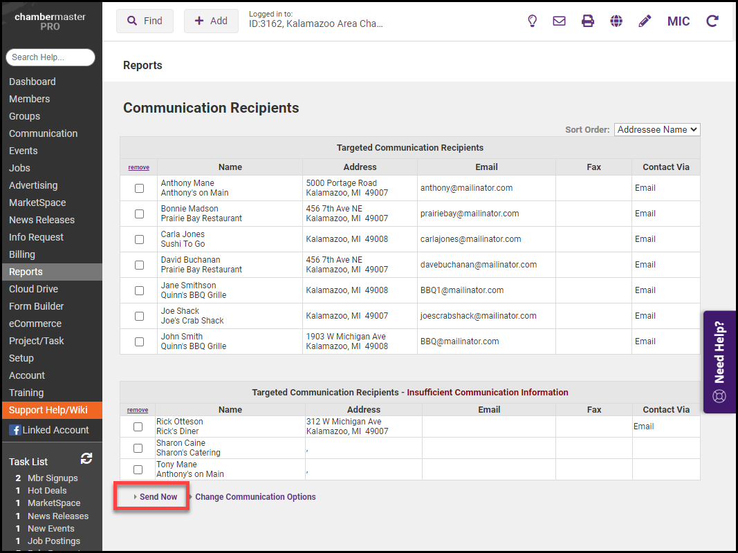 Click Send Now.
