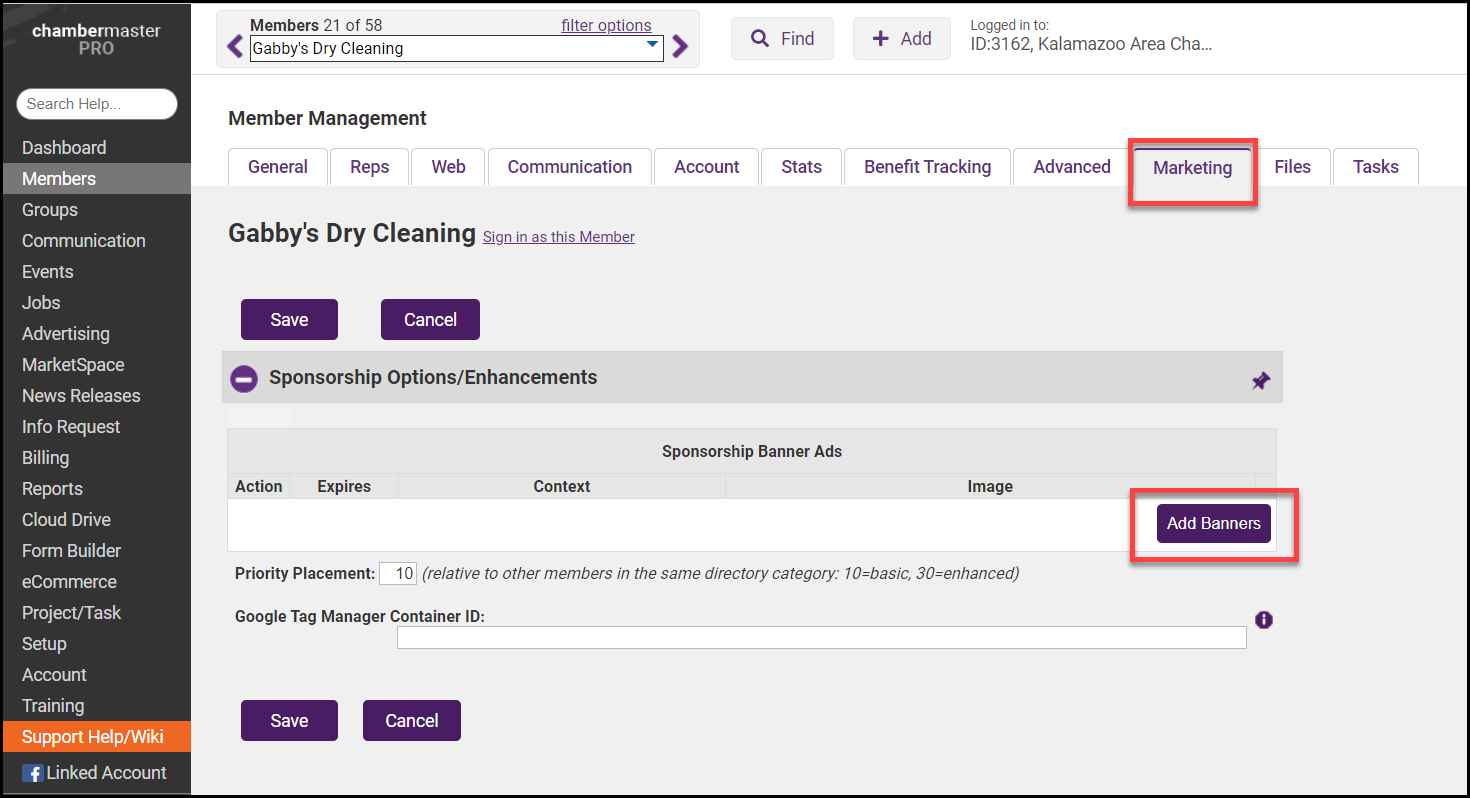 - By entering the Priority of 10, the member will be selected randomly among all members displaying banners in this category.
