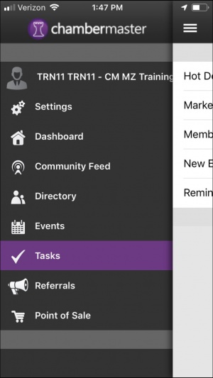 - Tasks: In the tasks area, you will see the number of tasks that may require attention. This area will display a list of any tasks (member applications to approve, hot deals to approve, marketspace items to approve, events submitted by your members to approve, and reminders).