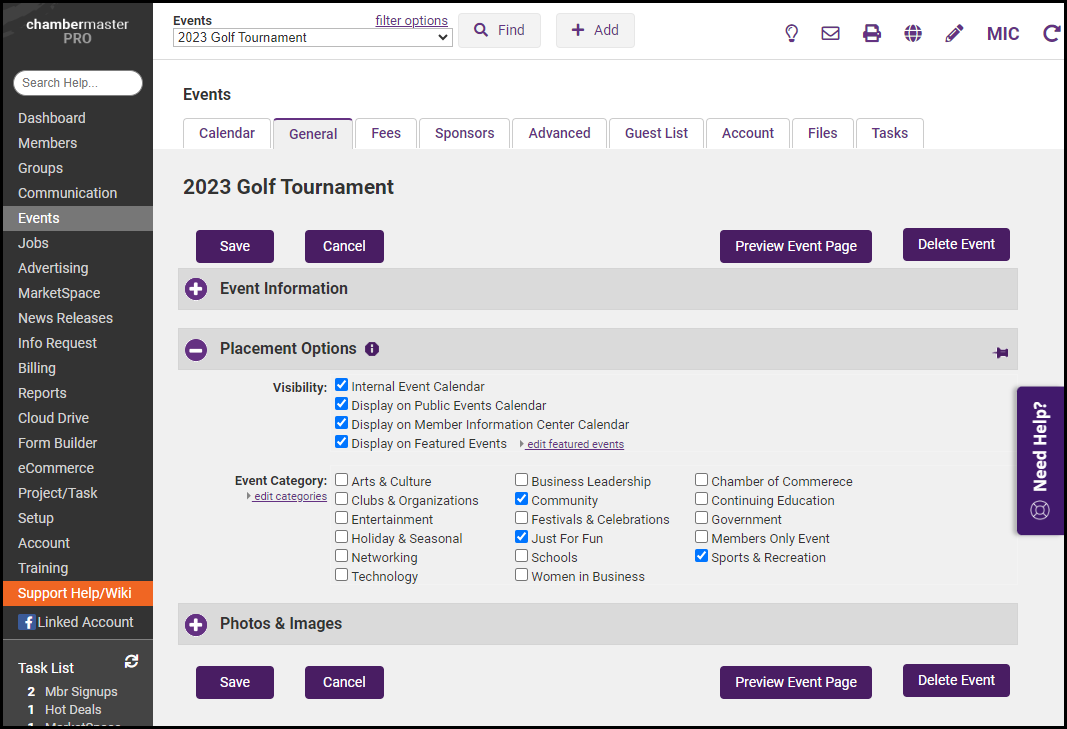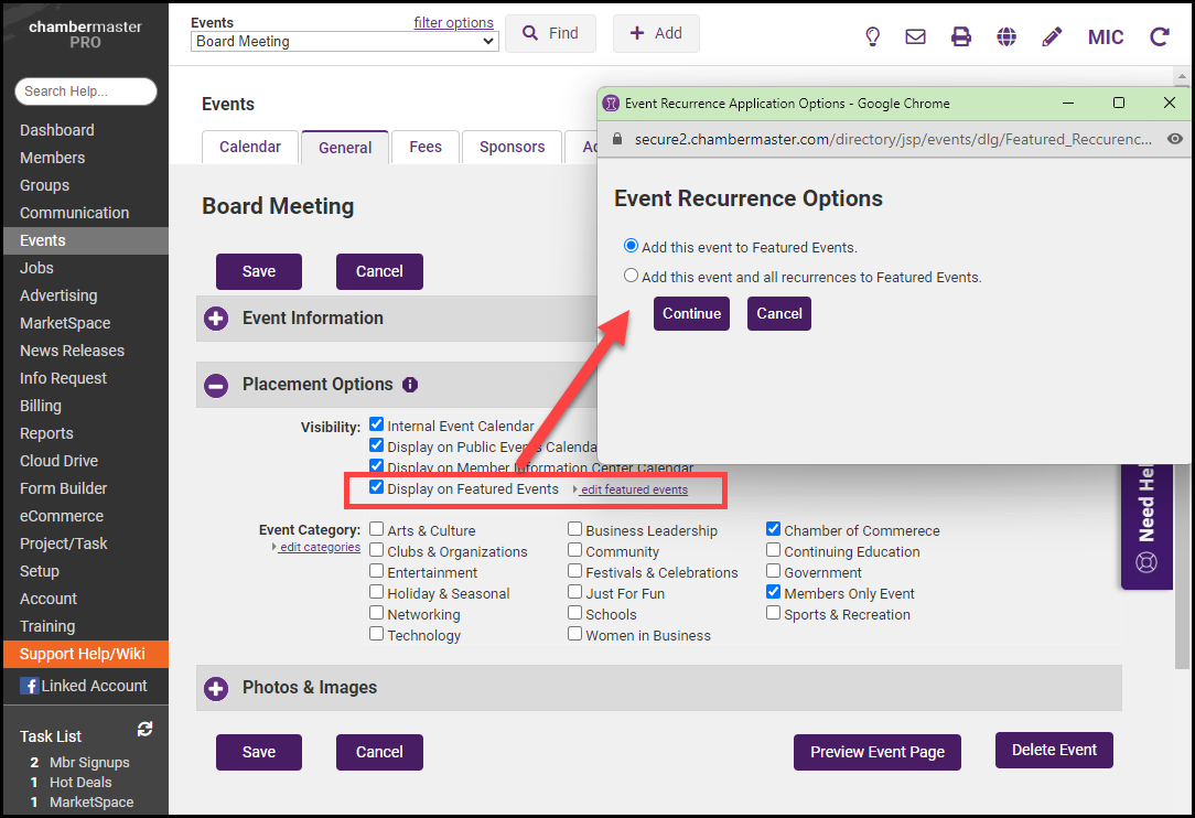 - Member Information Center Calendar: This option includes the event on the MIC events calendar.