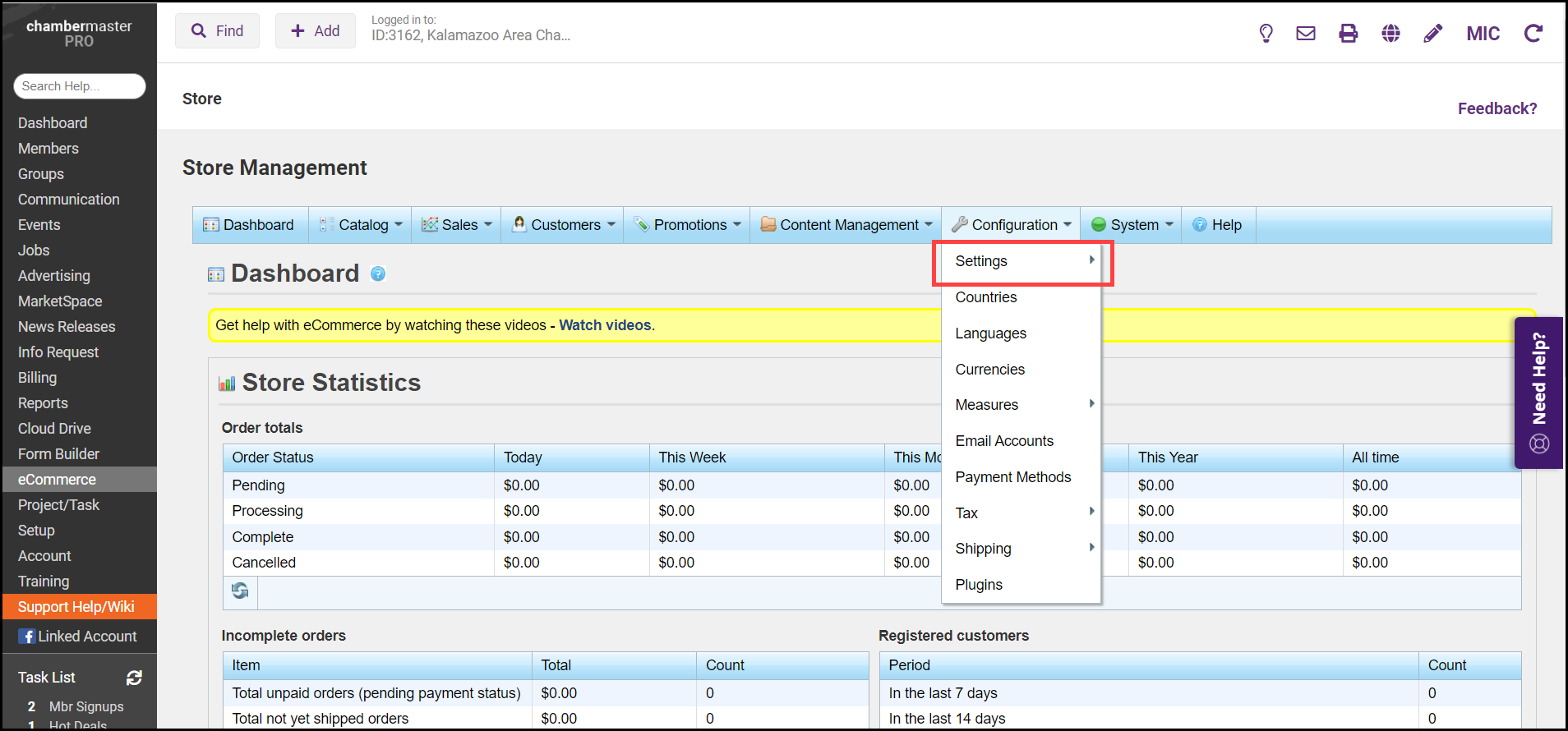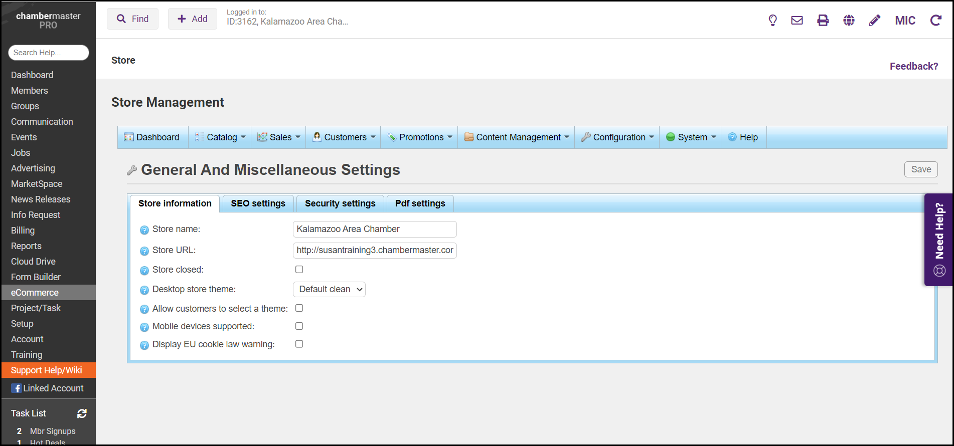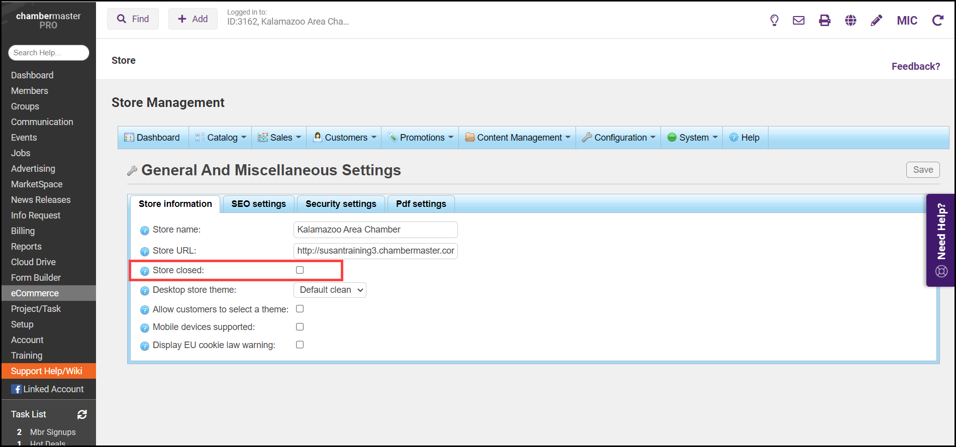 Close eCommerce Store February 24, 2026 15:04 Updated Select eCommerce from the left-hand menu. On the Configuration tab, select Settings. Select General and Miscellaneous Settings. Select the Store closed checkbox. Related articles eCommerce Getting Started with eCommerce