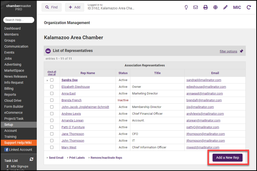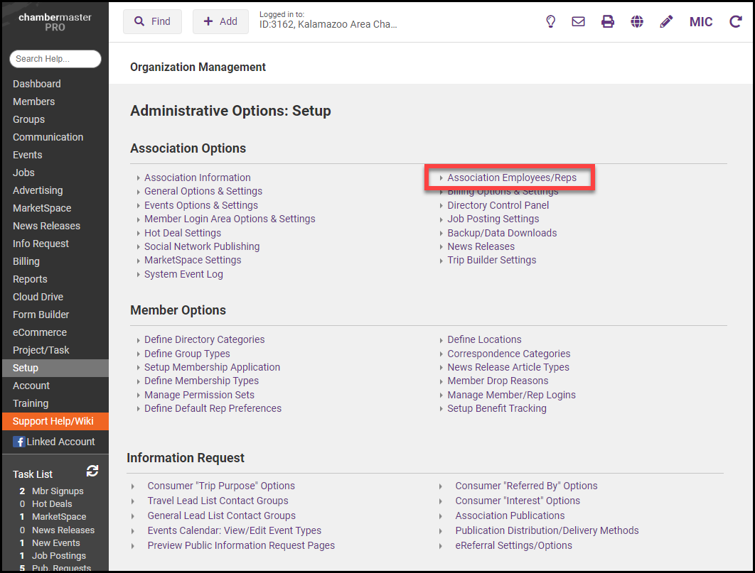 Click Association Employees/Reps in the Association Options area.
