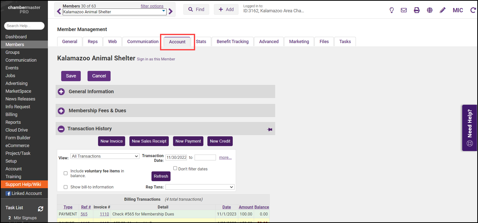 You can document a refund by check from an original check payment or, after the 90-day refund option from a credit card transaction on the member's Account tab.