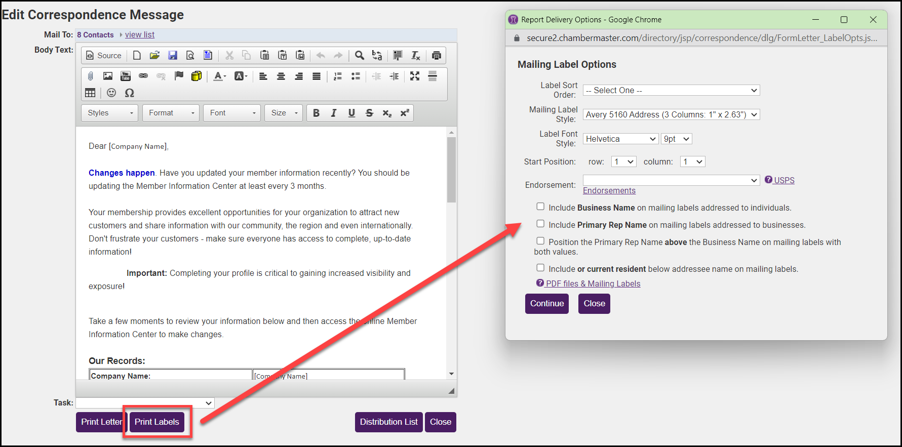 - Close the label-printing windows and return to the letter composition window.