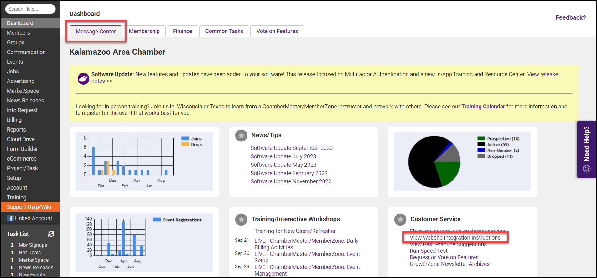 - On the Dashboard, select the Message Center tab.