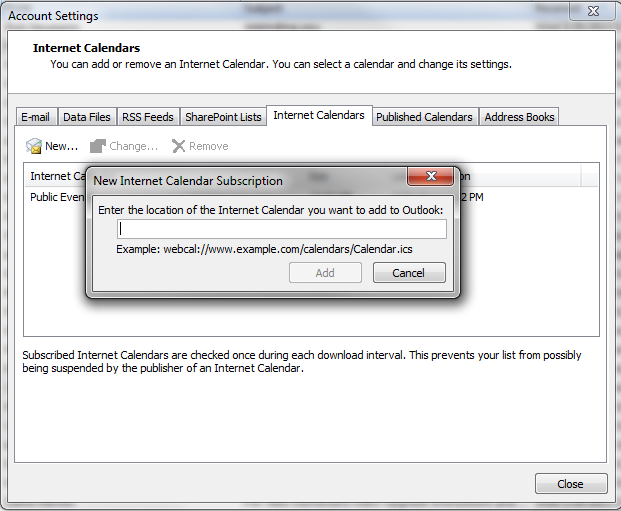 - Click the Internet Calendars tab.