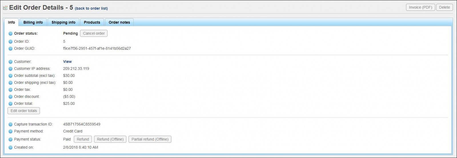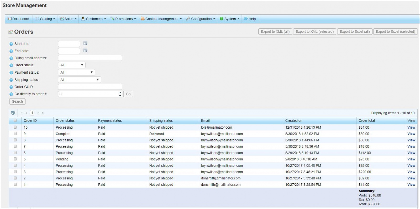 Note the orders and their status columns – Order status, Payment status, and Shipping status. If your list of orders is quite long, use the filter at the top of the list to specify exactly what you’d like to see in your list. You can filter the list in the following manner: