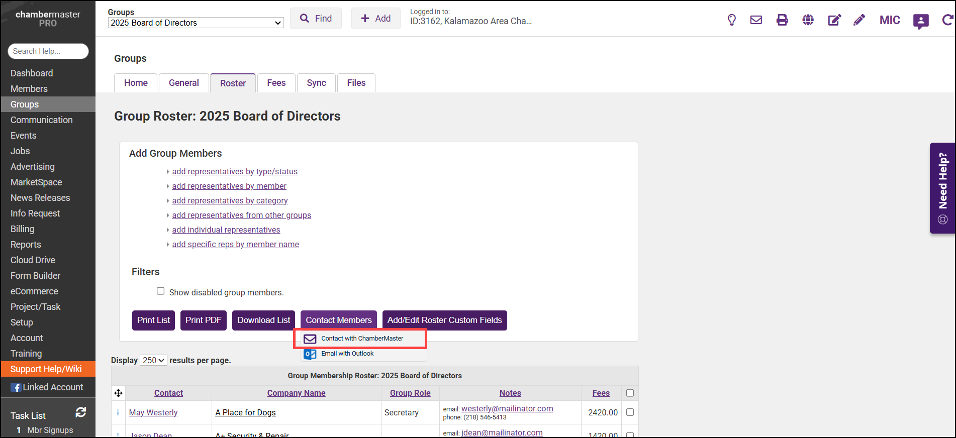 - Select either Edit with ChamberMaster to send the email within your software, or select Edit with Outlook. Click here to see how to send an email with Outlook. See Email Sending Options for more information.