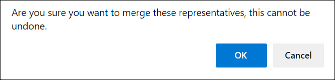- Click OK to confirm that you wish to merge the reps. IMPORTANT! This merge cannot be undone.