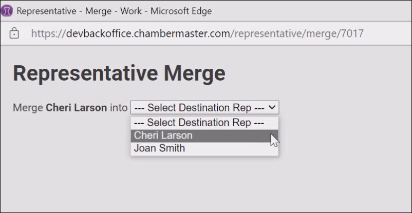 - Choose the rep into which you wish to merge.