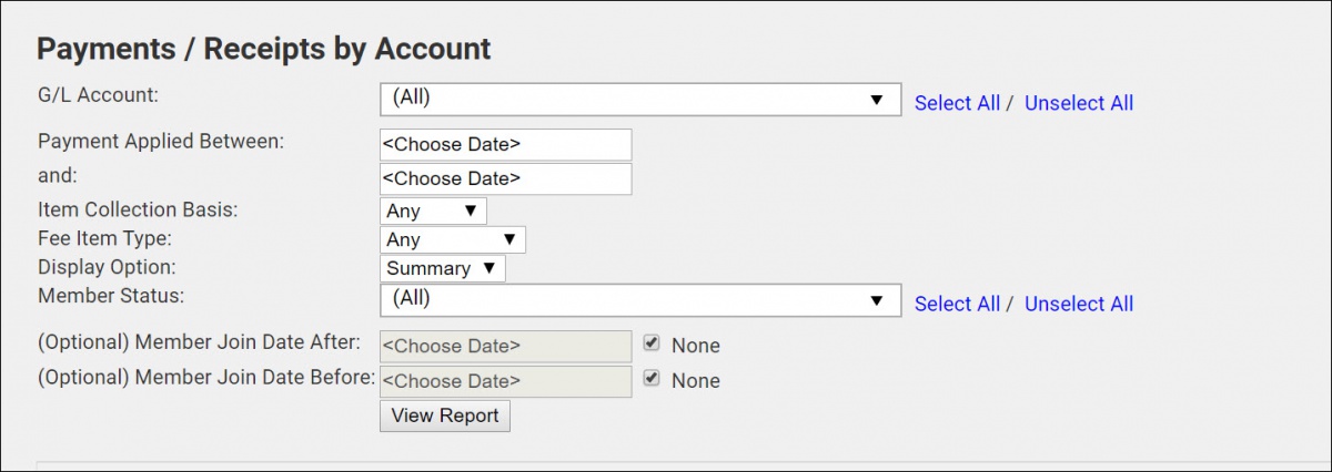 Member Status: Select All to view payments for all member statuses, or select the desired member status(es).