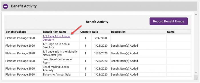 In the Benefit Activity section, click the link for the benefit usage you wish to change.