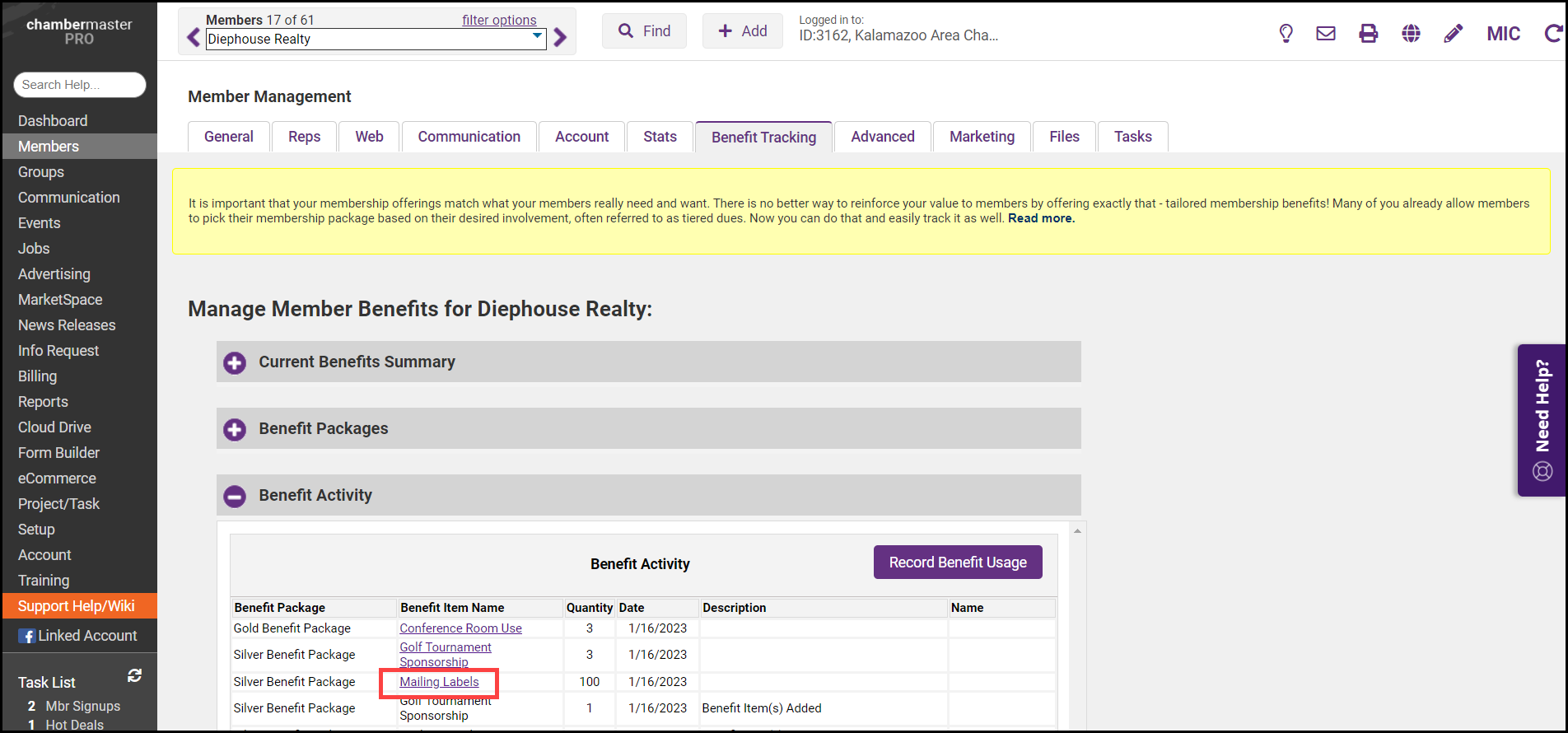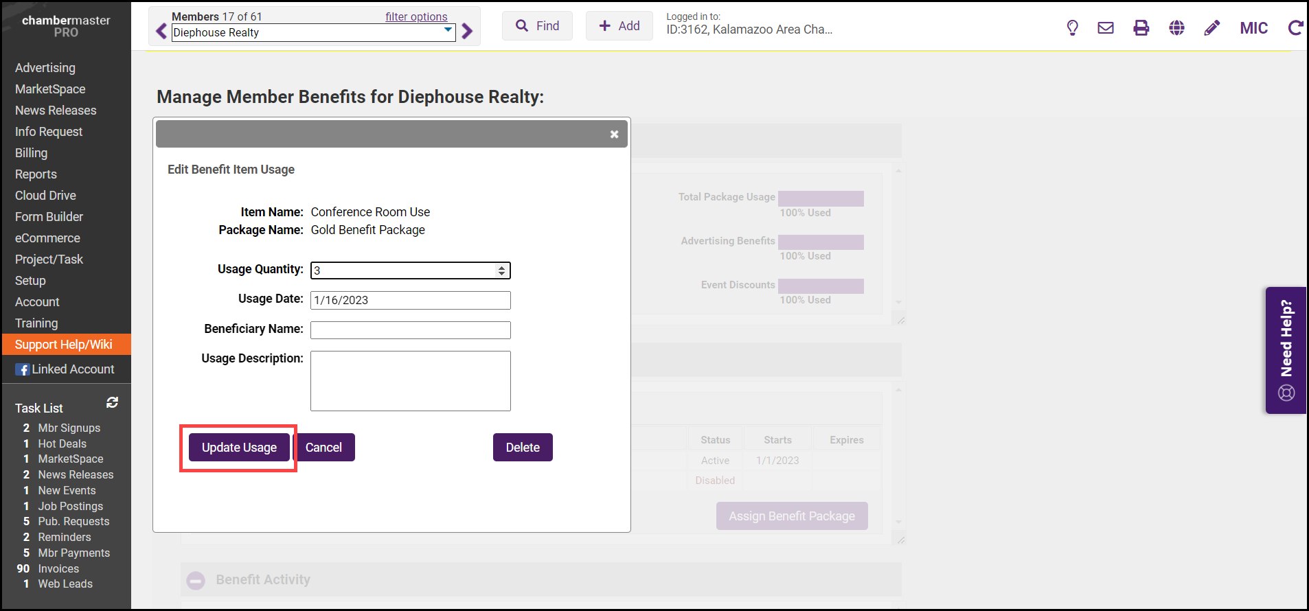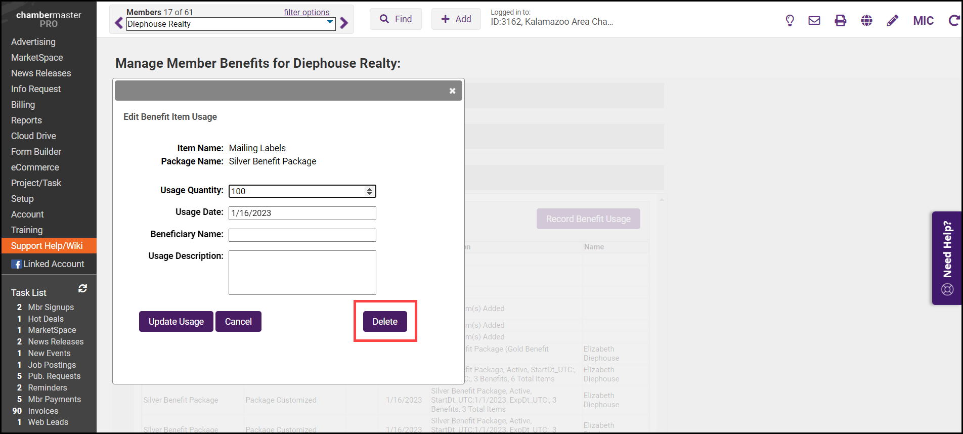 If a staff person accidentally records that someone used a benefit, but later realizes they put it on the wrong member, or they recorded a use incorrectly, the benefit usage may be deleted.