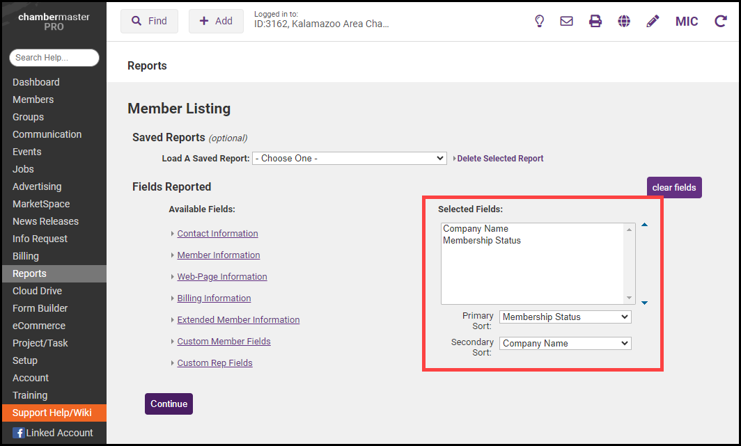 - Select Company Name and Membership Status from the Available Fields.