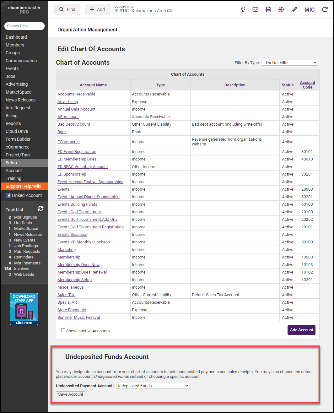 - Click Chart of Accounts in the Billing area.