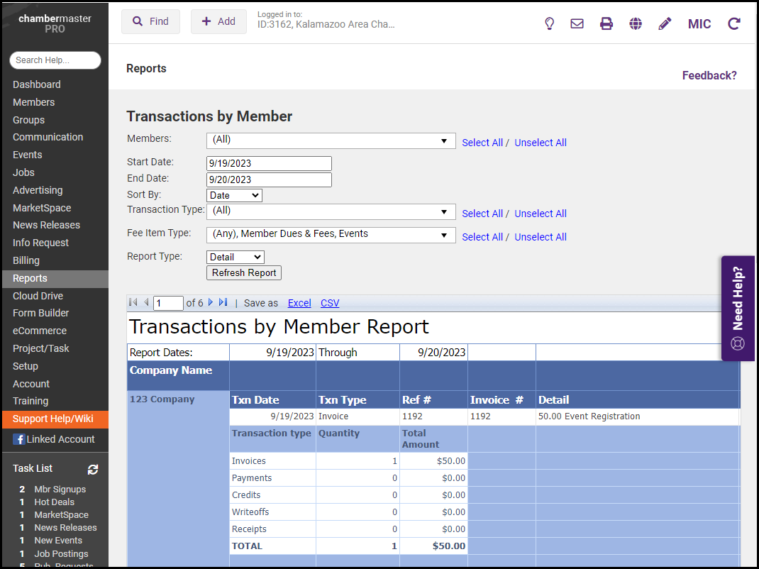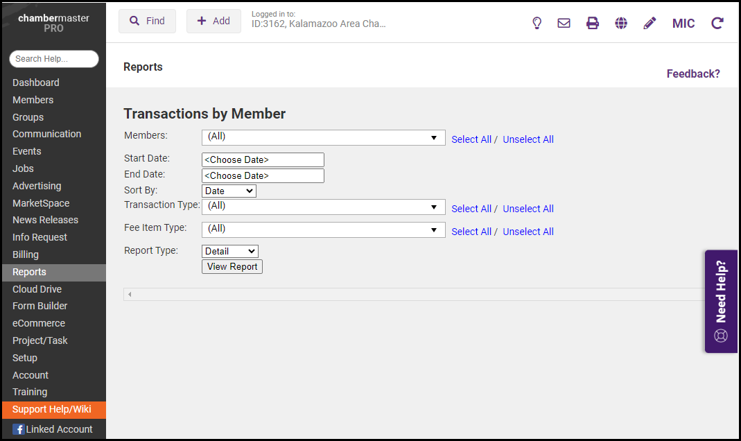 The Transactions by Member report allows you to display all billing transactions of any or all of your members in a single report. The report allows you to: