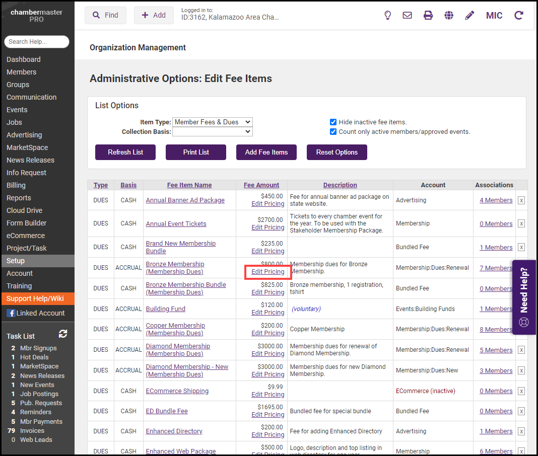 For Fee Items that are already assigned to members, you may wish to change the billing frequency in bulk.