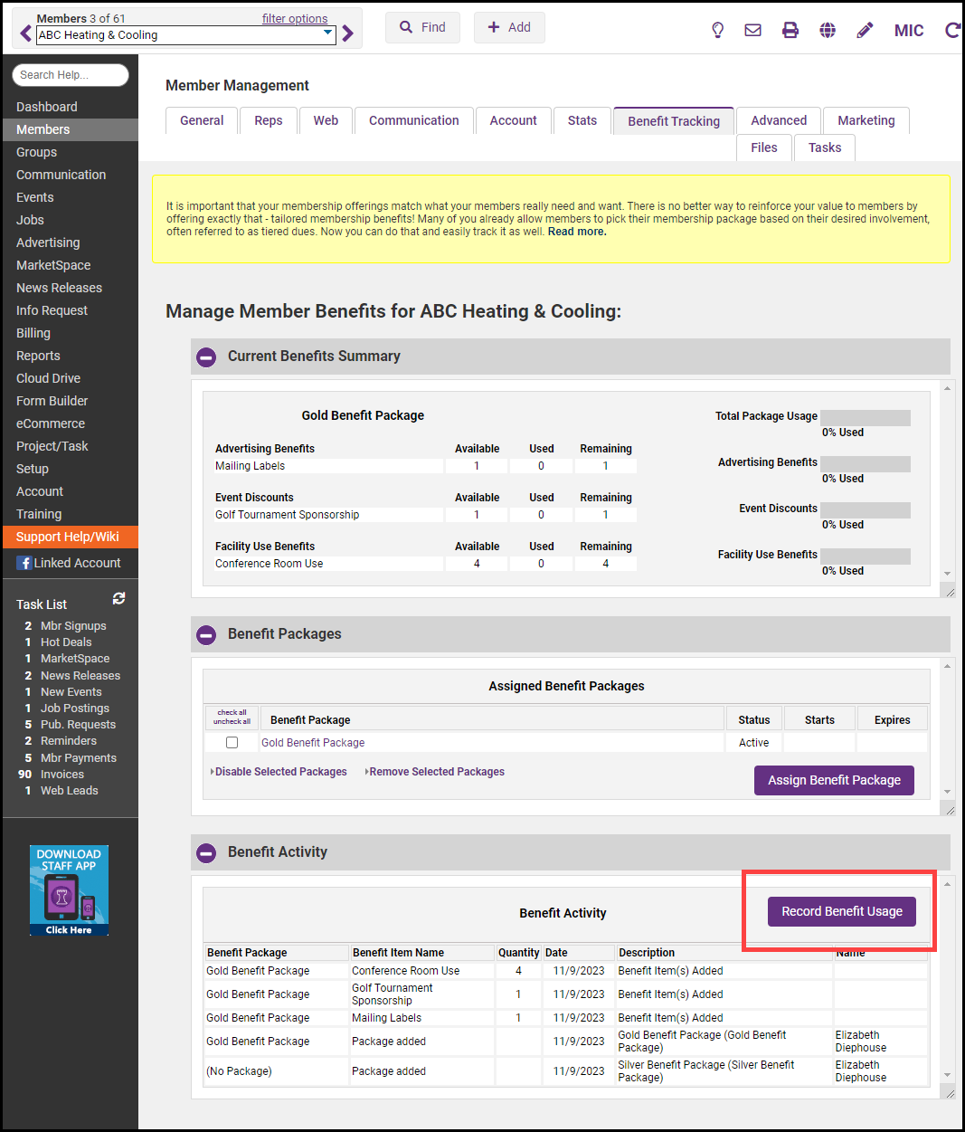 - In the Benefit Tracking section, click the Record Benefit Usage button.