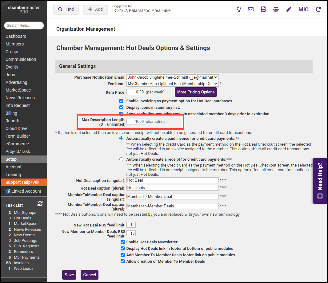 Max Description Length: Enter the maximum number of characters allowed in the description of the Hot Deal.