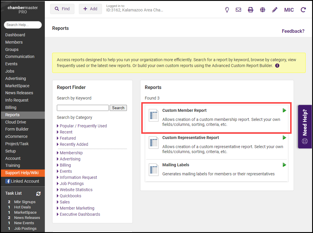 - Select the Custom Member Report.