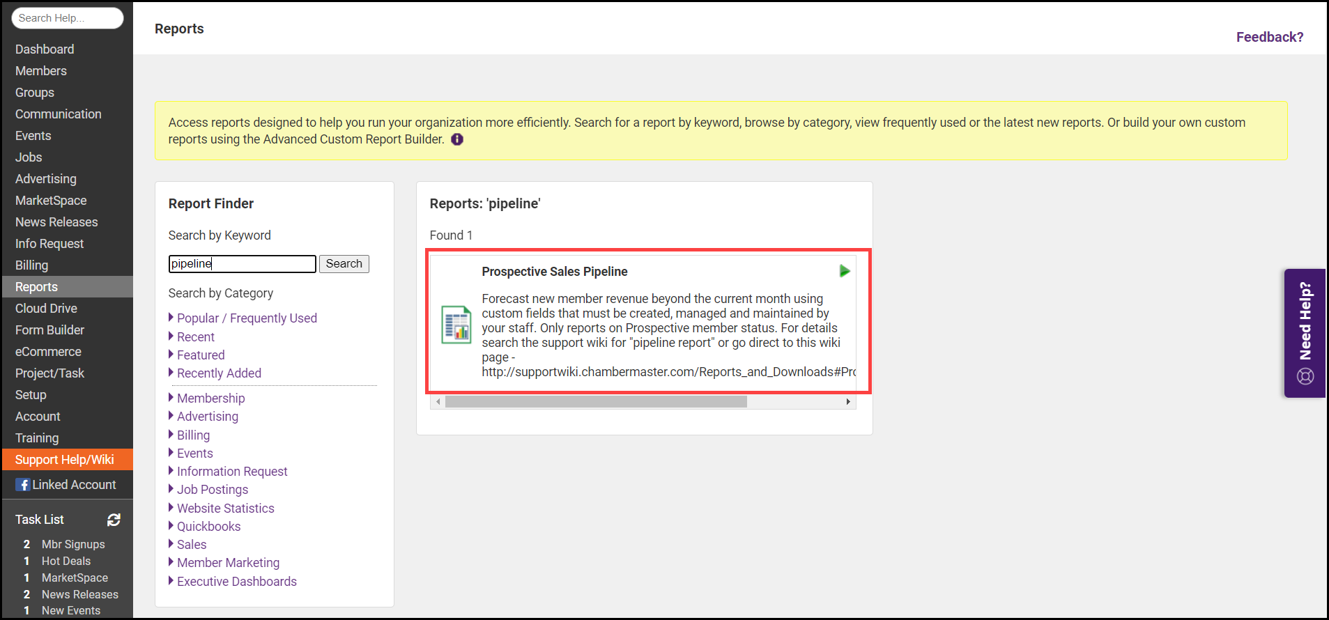 - Locate the Prospective Sales Pipeline Report.