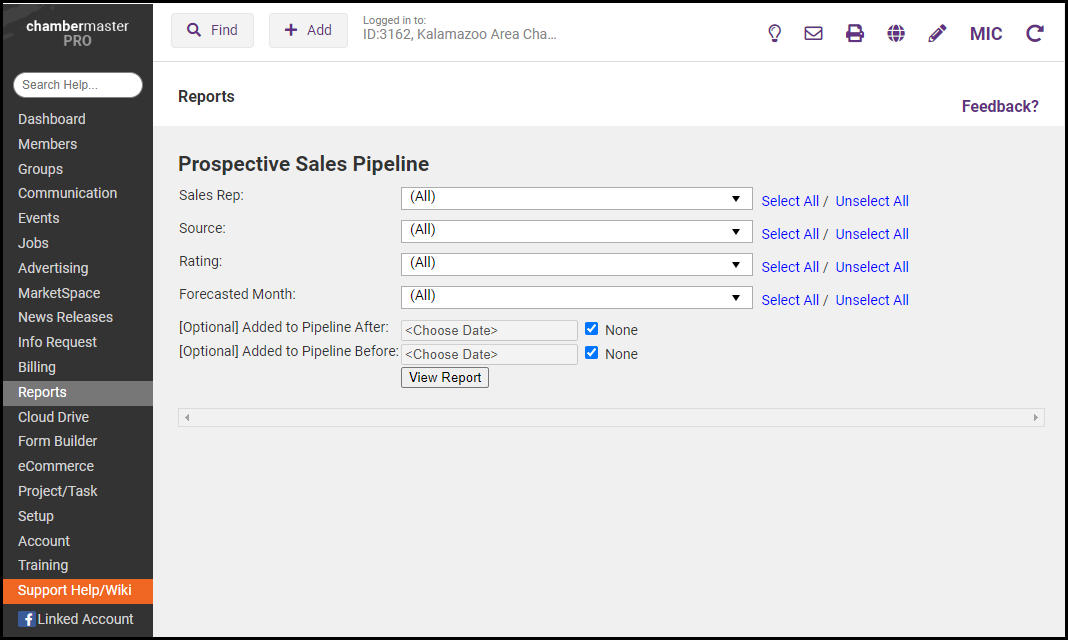 NOTE: The report is hard-coded to return members with Prospective as their status in your database.