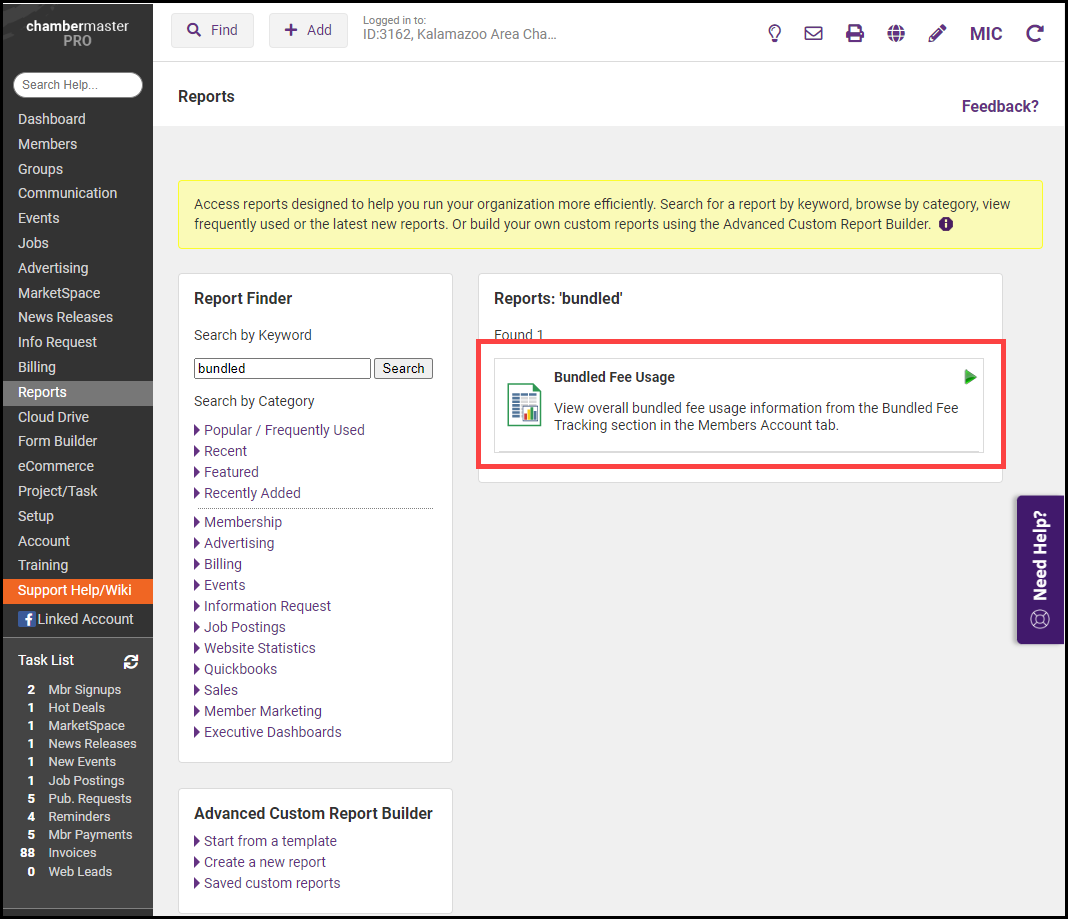 - Locate the Bundled Fee Usage Report.