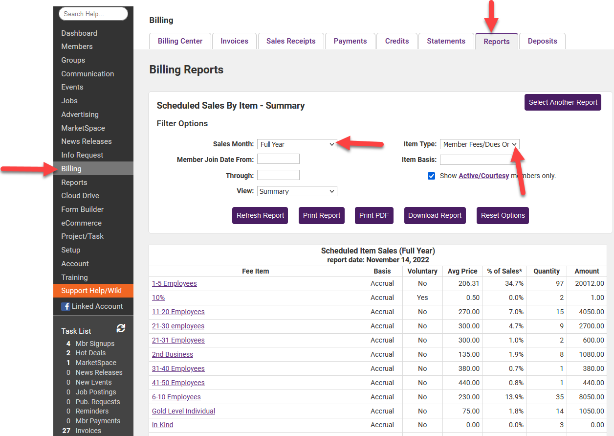 - In the Sales drop-down menu, select Scheduled Item Sales By Month.