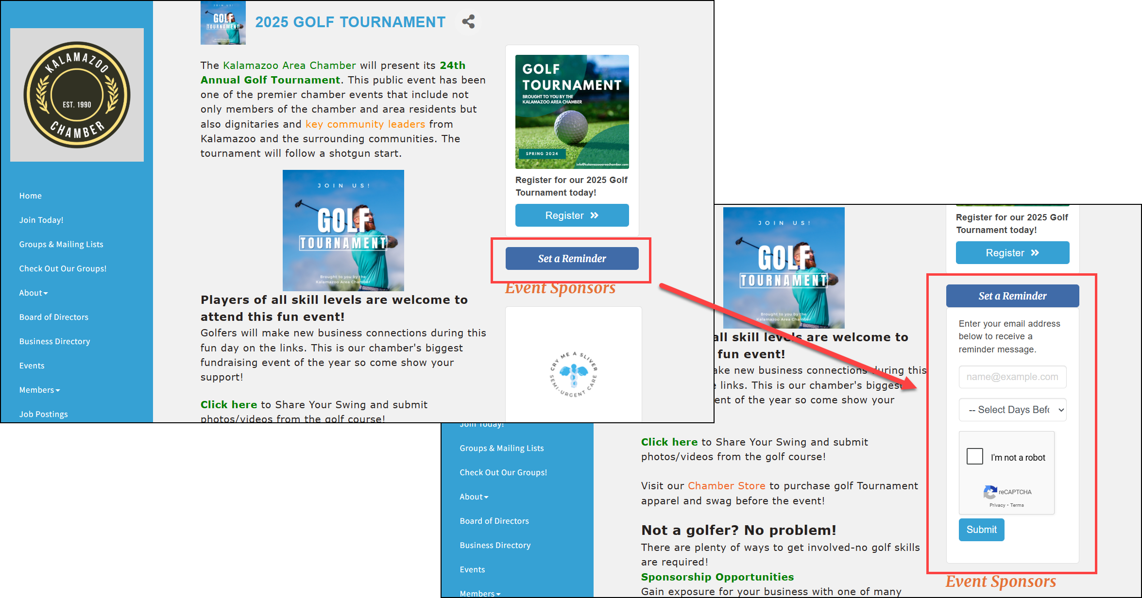 - Select Save. When this setting is enabled, a Set a Reminder button will appear below the Register button on your event page.