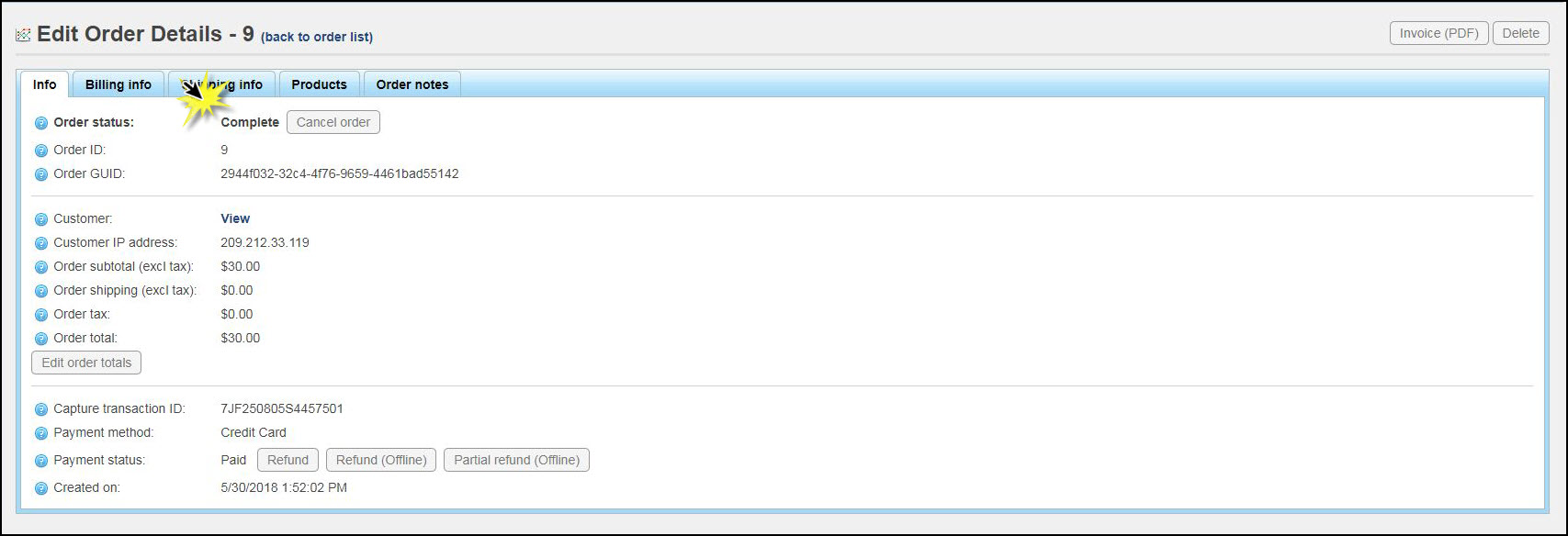 Once the order has been marked as paid, shipped, and delivered it will list as "Complete" on the Order Info tab and on the Store Dashboard.
