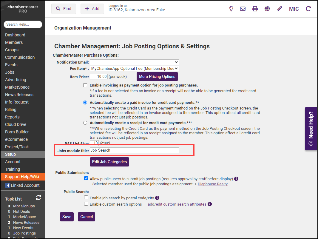 By default, when you add job postings widget to your public website, the title will be Job Search.