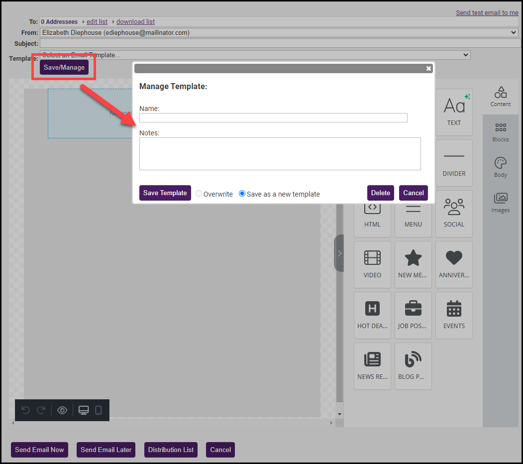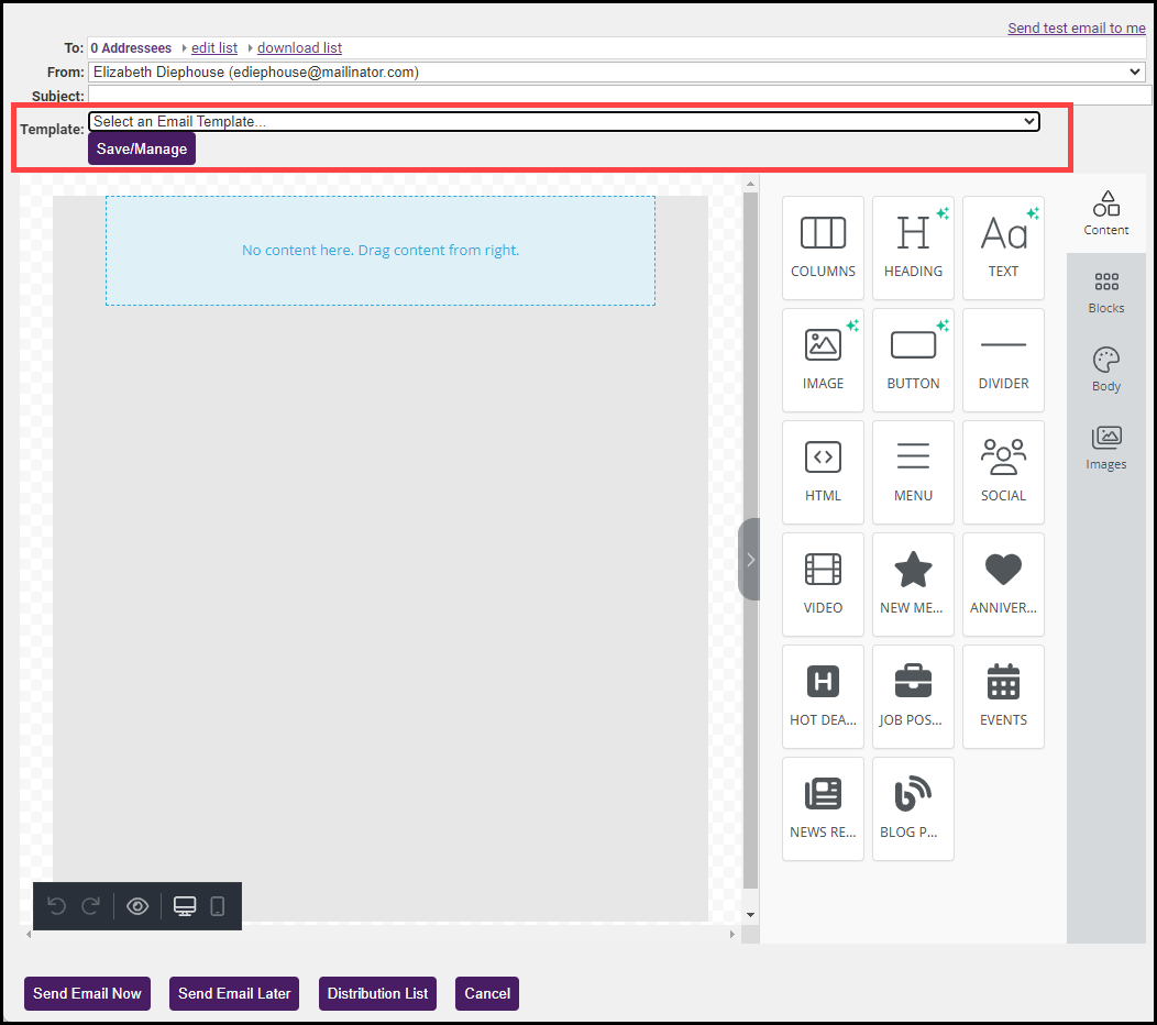 - Click Create Email Designer Email.