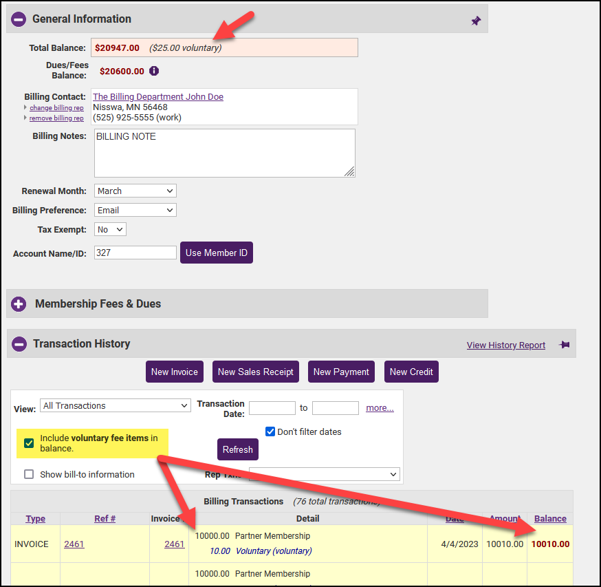 Future statements or account balances will exclude voluntary amounts unless specifically included at the time statements are created/balances are viewed. If you are on an accrual basis and need to recognize voluntary fees only when they are paid (i.e. prevent them from reporting as an outstanding Accounts Receivable balance in your accounting software) you can contact Support to have this feature enabled.