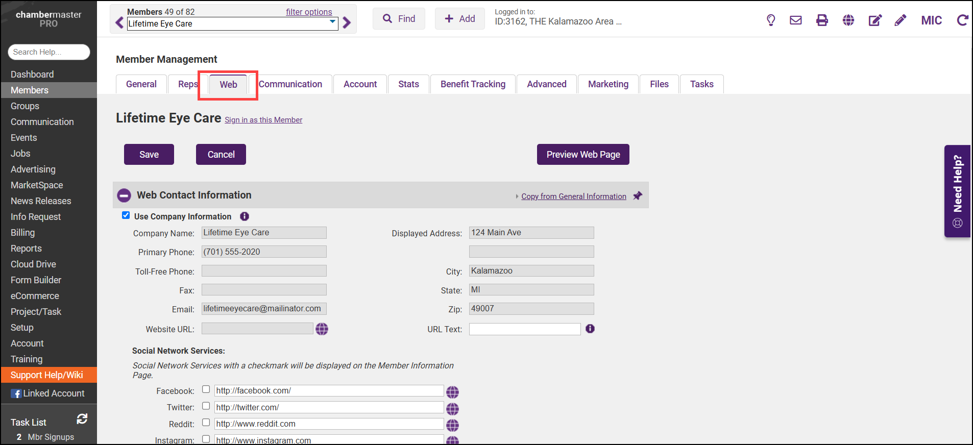 - Select the Web tab for the appropriate member.