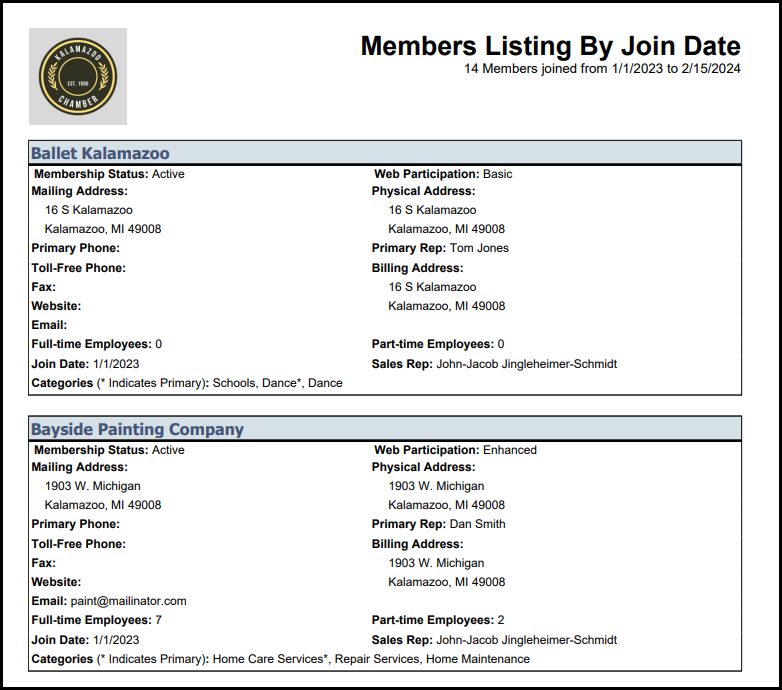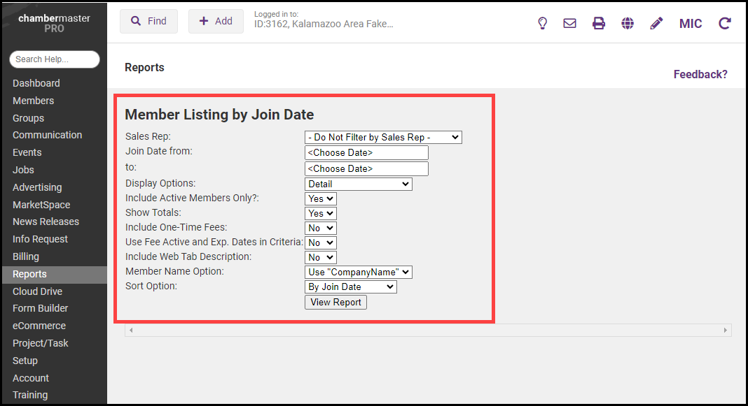 The Member Listing by Join Date report provides statistics about members who have joined over a selected date range.