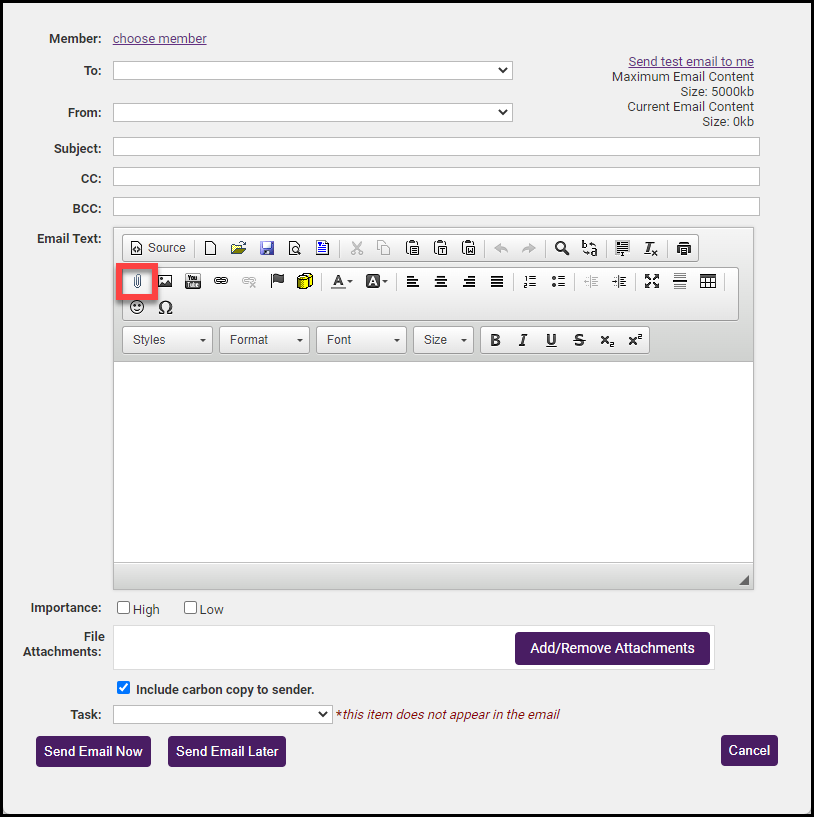Any files uploaded to the Email Attachments area in the Cloud Drive will be available to be attached to an email when sending using the software’s editor. These files are also available as public links without being sent in an email when the link is made known to the end user.