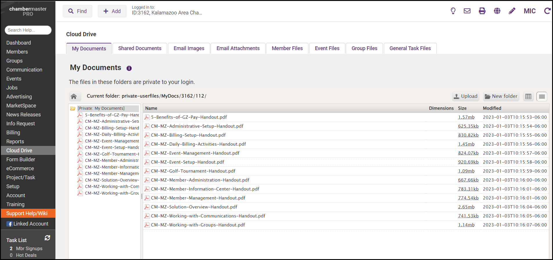 Store your documents in the Cloud Drive, a selection in the left-hand menu of your software, to access them anytime from any computer that has a connection to the internet and access to the database. 10GB of storage space is available to you.
