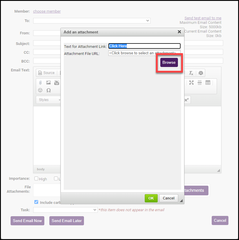 - Click OK to embed your image in the body of the email.