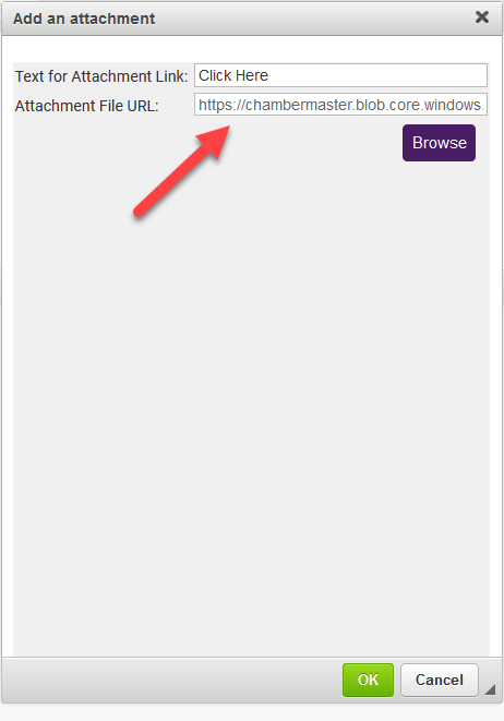 - Click OK to embed your file as a link or copy the Attachment File URL and give that URL to users that need to access this file.