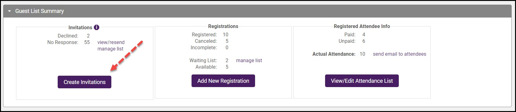 Click Create Invitations in the Invitations section.