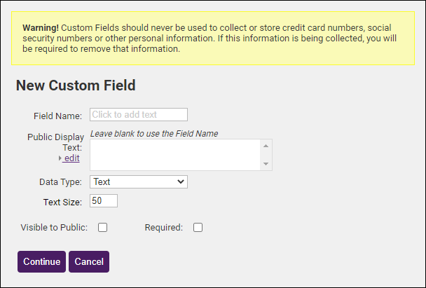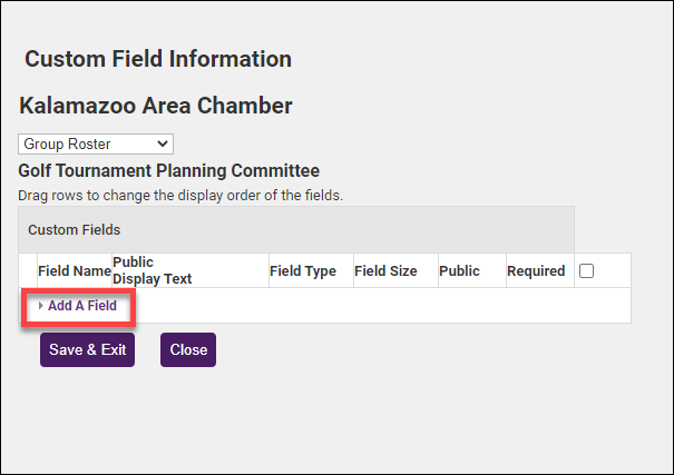 NOTE: Unlike custom fields for reps, members, or events, custom fields for groups are intended for internal use only. |