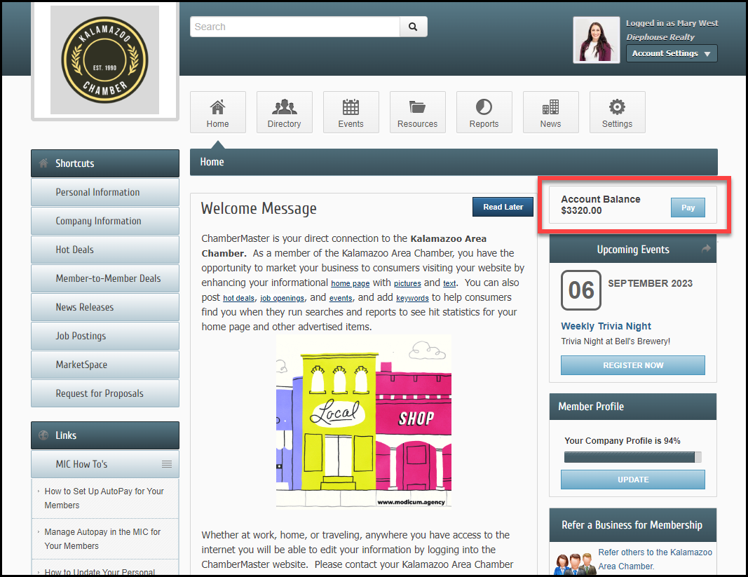 After logging in to the Member Information Center (MIC), select the Pay button on your home screen.