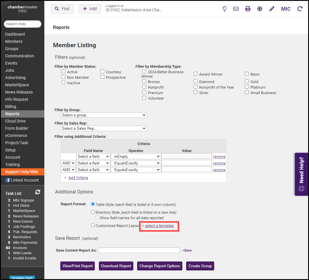 - Select the Custom Member Report.