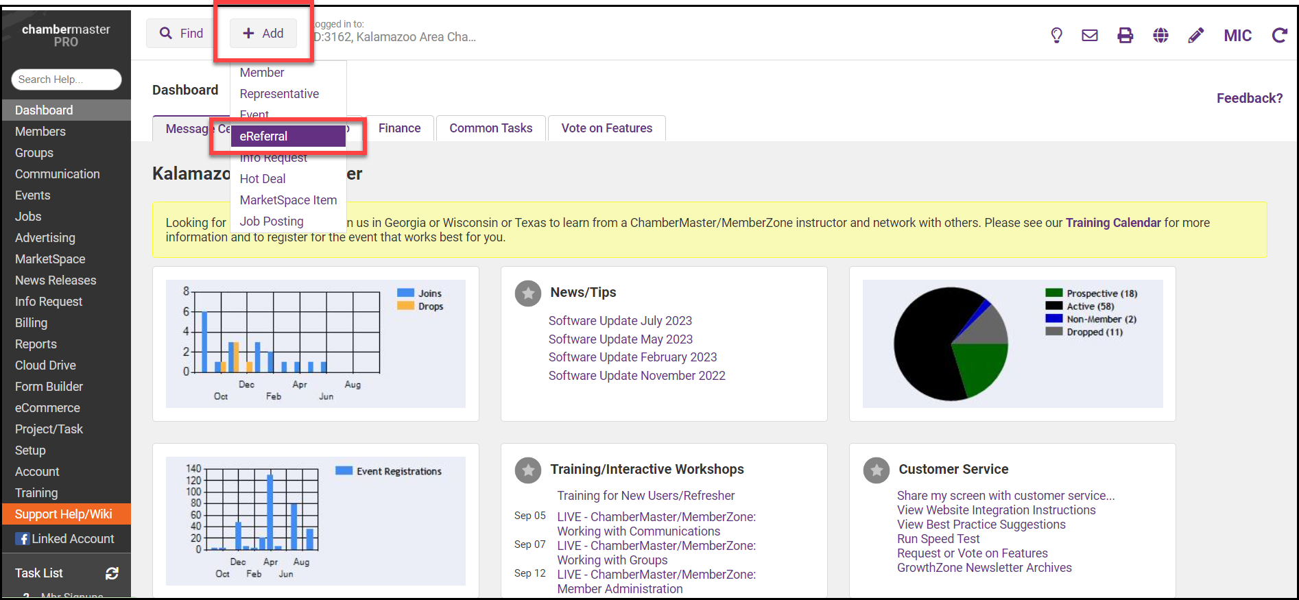 Click the +Add button and select eReferral.