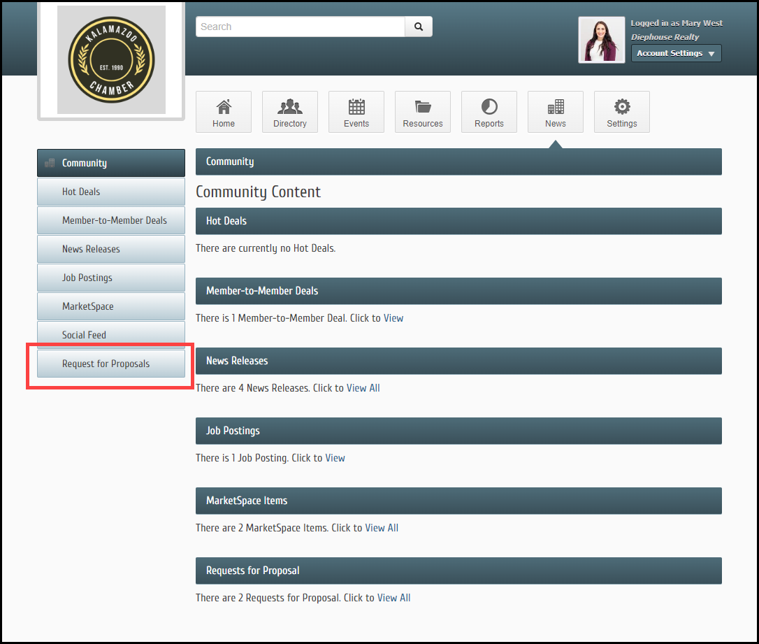 Click the Settings tab to view the available features for the Member Information Center (MIC).