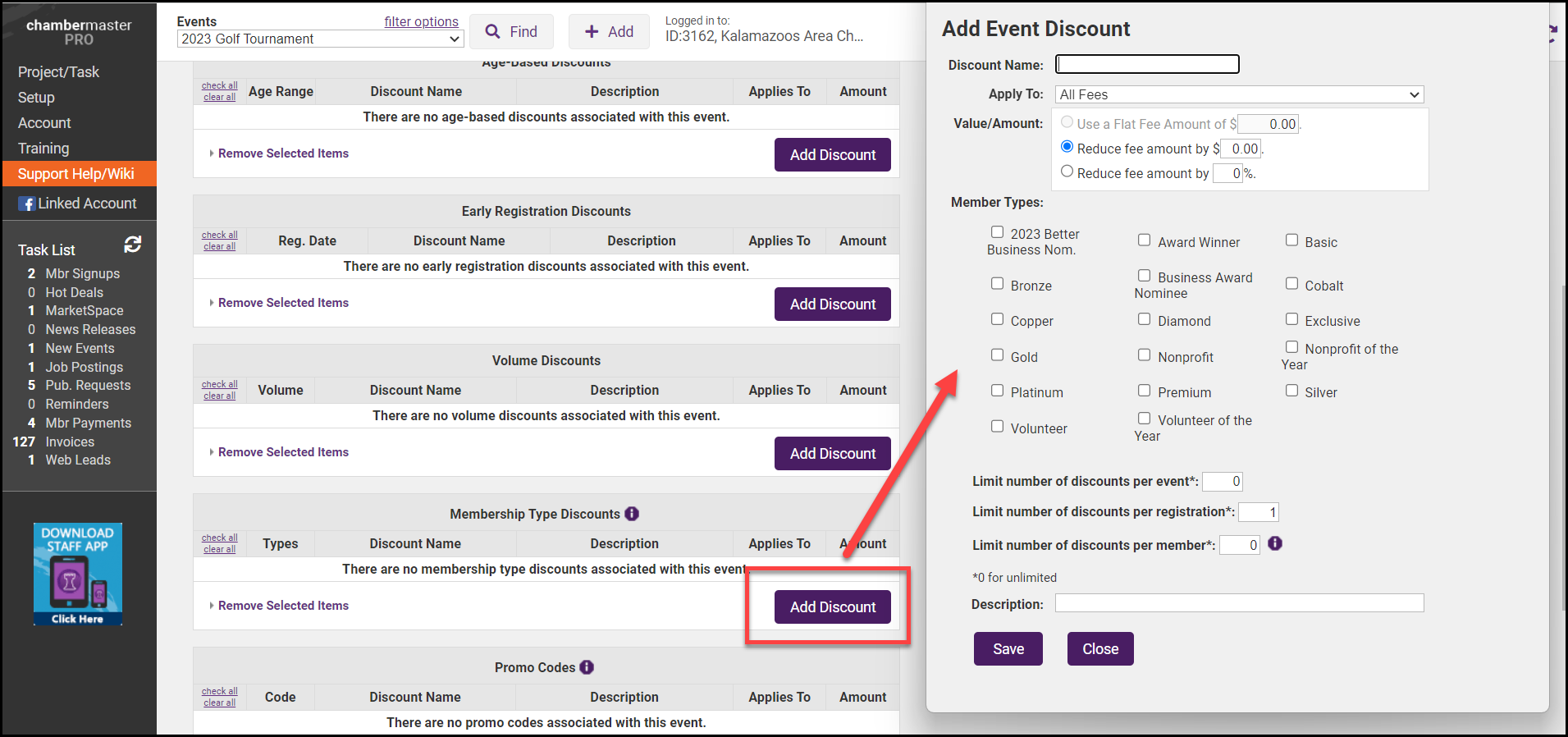 - Complete the Add Event Discount screen.